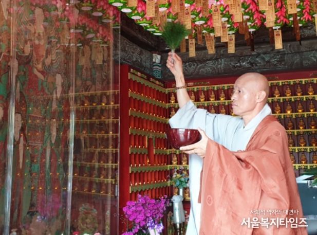 서울복지타임즈 이득형 기자 | 구미시는 5일 대한불교조계종 대둔사에서 국가 문화유산 보물로 지정된 『구미 대둔사 삼장보살도』의 복원 점안 법회를 봉행했다고 밝혔다.