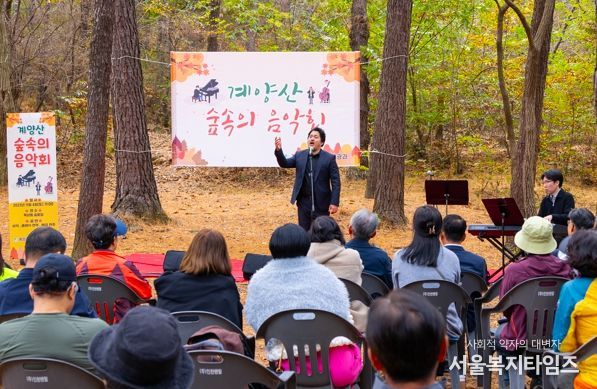 서울복지타임즈 이득형 기자 | 인천광역시 계양구는 지난 4일 단풍으로 아름답게 물든 계양산 목상동 솔밭길에서 ‘숲속의 음악회’를 개최했다.