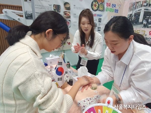 이날 행사에서 경산교육지원청은 'K-급식 영국속으로!'라는 주제로 급식박람회 부스를 운영했다. 영국과 한국의 차(tea)와 급식문화를 비교함으로써 세계 식문화를 간접 체험해볼 수 있는 시간이었다. 특히 식판에 한상 차려진 음식 모형은 실물을 그대로 구현해 학생들과 학부모들의 눈길을 끌었다. 체험코너로는 한국과 영국의 국기를 활용한 타투 붙이기, 전통간식(약과, 스콘)과 전통음료(식혜, 홍차) 맛보기 등을 운영했다.