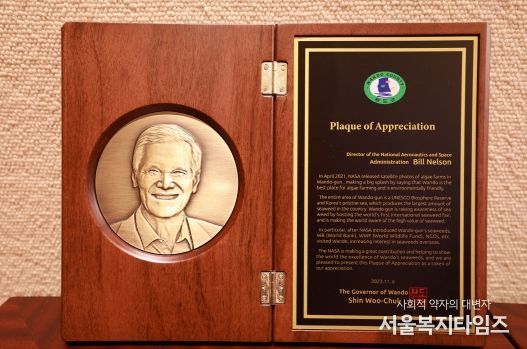 이에 군은 완도산 해조류 이미지 제고에 큰 영향을 준 미국 항공우주청에 감사패를 전달하게 됐다.