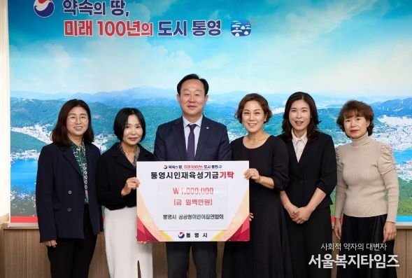 서울복지타임즈 이득형 기자 | 통영시 공공형어린이집연합회는 6일 통영시를 방문해 인재육성기금 100만원을 기탁했다.