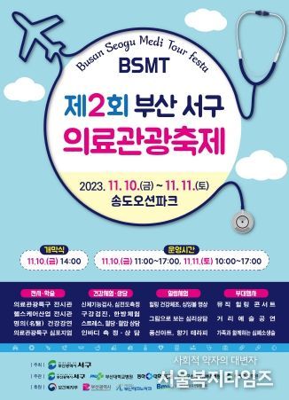 이번 축제는 `의료관광특구 서구'를 널리 알리고 활성화하기 위하여 작년에 이어 2회째로 개최 되며 서구 관내 부산대학교병원·동아대학교병원·고신대학교복음병원·삼육부산병원이 공동으로 주관한다.