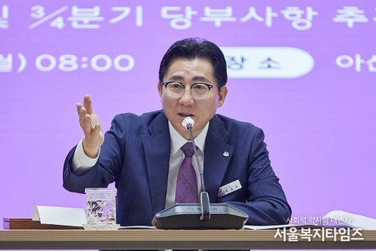 서울복지타임즈 이득형 기자 | 박경귀 아산시장은 6일 시청 상황실에서 열린 11월 확대간부회의에서 “지난달 26~29일 열린 ‘2023 대한민국 온천산업박람회’에서 ‘온천수도’를 선포했다. 이를 위한 10개년 계획을 수립해야 한다”고 밝혔다.
