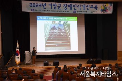 서울복지타임즈 이득형 기자 | 거창군은 지난 6일 장애인과 비장애인이 하나 되는 거창군을 만들기 위해 거창문화원 상살미홀에서 직원 700여 명을 대상으로 장애인식개선 교육을 시행했다.