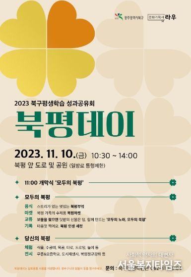 서울복지타임즈 이득형 기자 | 광주시 북구가 오는 10일 북구평생학습관 야외 일원에서 ‘2023년도 북평데이(북구평생학습데이)’ 행사를 연다고 7일 밝혔다.