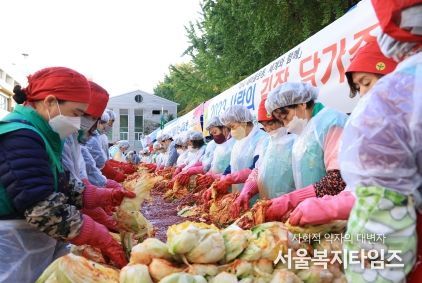 서울복지타임즈 이득형 기자 | 대구 수성구새마을회는 7일 수성구청 주차장에서 ‘사랑의 김장 나누기’ 행사를 개최하고 지역의 어려운 어르신 등 800여 세대에 김장김치를 전달했다.