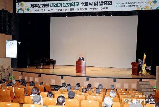 서울복지타임즈 이득형 기자 | 강병삼 제주시장은 11월 7일 제주학생문화원 대극장에서 열린 ‘제29기 문화학교 수료식’ 행사에 참석해 제주문화원 관계자들을 격려하고 시민들과 소통의 시간을 가졌다.