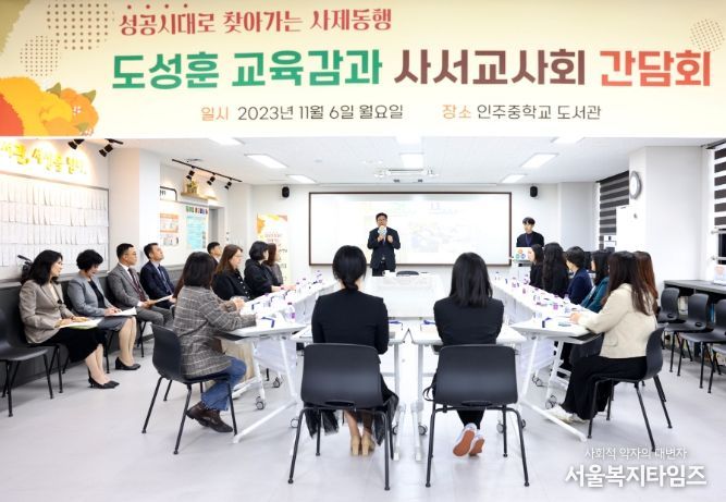 서울복지타임즈 이득형 기자 | 도성훈 인천광역시교육감은 6일 인주중학교 도서관에서 ‘성공시대로 찾아가는 사제동행’의 일환으로 사서교사들과 간담회를 진행했다.