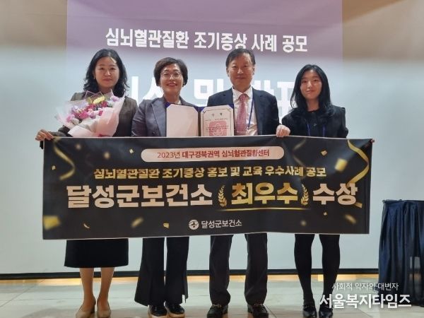 서울복지타임즈 이득형 기자 | 달성군보건소는 대구경북 권역심뇌혈관질환센터 주관 ‘2023년 심뇌혈관질환 조기증상 홍보 및 교육’ 공모전에서 작년에 이어 올해도 2년 연속 최우수상을 수상했다.