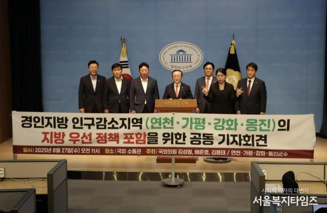 서울복지타임즈 이재연 기자 | 경기 연천군, 가평군, 인천 강화군, 옹진군 4개 기초자치단체는 27일 국회 소통관에서 기자회견을 열고, 정부가 균형성장을 위해 추진하는 지방 우선 정책 분야에 경인지방 인구감소지역을 포함해 달라고 촉구했다.