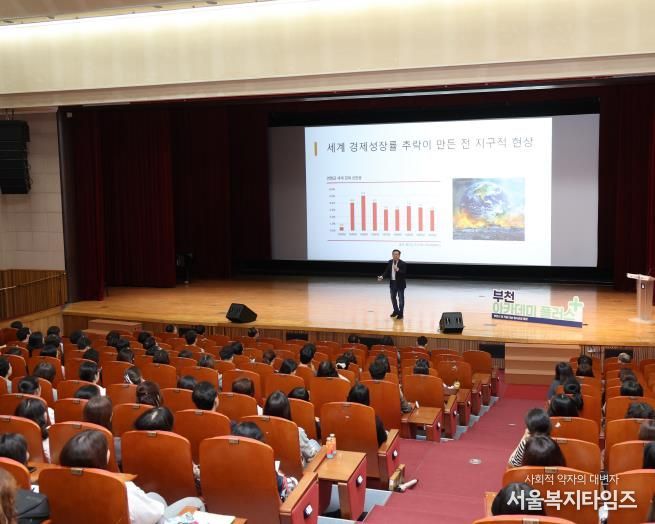 서울복지타임즈 이재연 기자 | 부천시는 9월 24일 부천시청 어울마당에서 전 직원을 대상으로 ‘부천 아카데미 플러스(+)’ 두 번째 강연을 열었다. 이번 강연은 지식경제연구소 박종훈 소장을 초청해 ‘2026, 세계 경제 전망을 통한 자산시장의 변화’를 주제로 진행됐다.