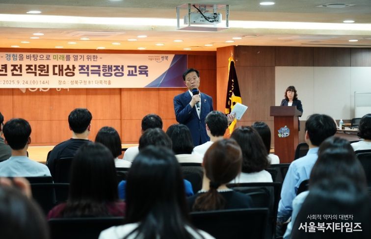 서울복지타임즈 이재연 기자 | 서울 성북구가 24일 전 직원을 대상으로 ‘적극행정 교육’을 실시했다. 구는 급변하는 행정 환경에 선제적으로 대응할 수 있는 실무 능력을 함양하고, 주민 체감형 행정 구현을 위한 적극행정 문화를 확산하기 위해 이번 교육을 준비했다.