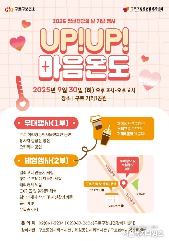 서울복지타임즈 이재연 기자 | 구로구가 9월 30일 오후 3시부터 6시까지 구로거리공원(제1공원)에서 ‘2025 정신건강의 날’ 기념행사를 개최한다.