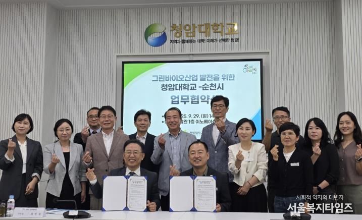 서울복지타임즈 이재연 기자 | 순천시가 29일 청암대학교 청암관에서 청암대학교와 그린바이오 산업육성을 위한 업무협약을 체결했다고 밝혔다.