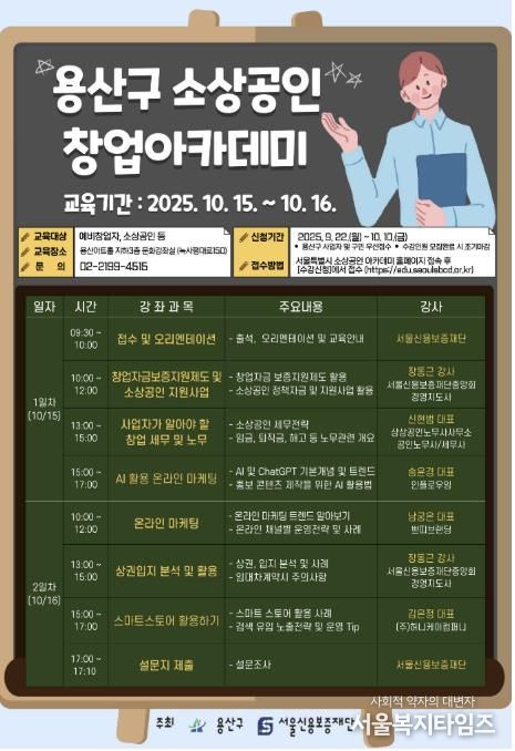 서울복지타임즈 이재연 기자 | 서울 용산구가 서울신용보증재단과 함께 예비창업자와 소상공인의 성공적인 창업 지원을 위한 ‘2025 하반기 창업아카데미’를 개최한다.