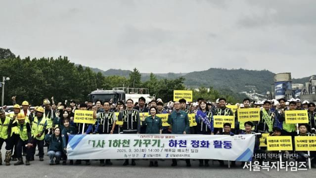 이날 행사에는 김경희 단양군 부군수를 비롯한 군청 직원 20명과 한일시멘트 및 한일현대시멘트 임직원 50명 등 총 70여 명이 참여해 매포천 주변에 방치된 쓰레기를 수거하며 구슬땀을 흘렸다.