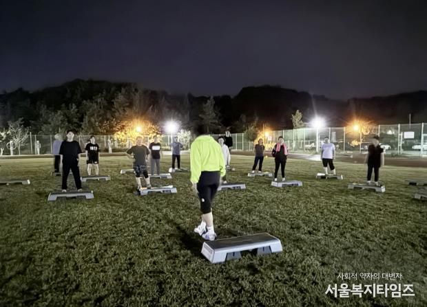 전문 운동처방사가 걷기 전·후 스트레칭 및 올바른 걷기 자세 교육을 진행하며, 스텝박스를 활용한 전신운동 등 다양한 건강관리법도 안내한다.
