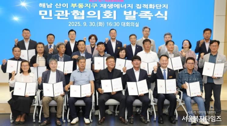 서울복지타임즈 이재연 기자 | 해남군은 9월 30일 해남군청 대회의실에서‘해남 산이 부동지구 재생에너지 집적화단지 민관협의회’발족식을 개최하고, 대규모 재생에너지 집적화단지 조성을 위한 본격적인 민관 협력 체계 구축에 나섰다.