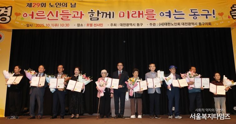 서울복지타임즈 이재연 기자 | 대전 동구는 1일 가양동 선샤인호텔에서 (사)대한노인회 대전 동구지회(지회장 박헌철) 주관으로, ‘제29회 노인의 날 기념행사’를 성황리에 개최했다고 밝혔다.