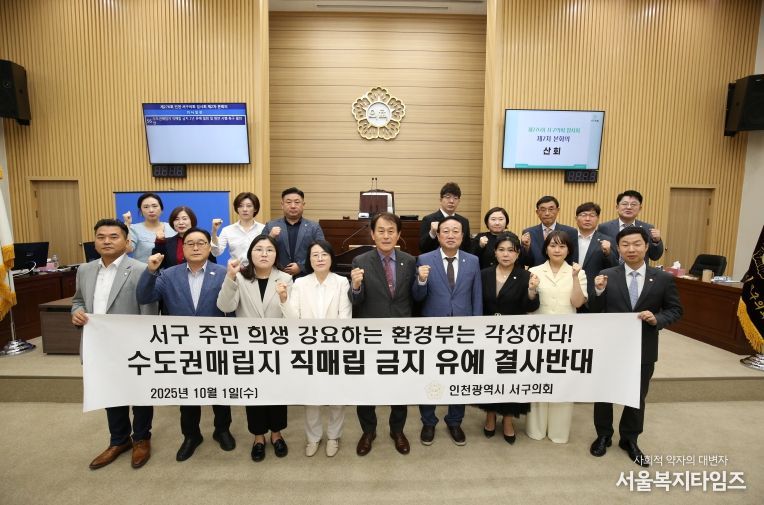 서구의회는 결의안을 통해 “인천 서구는 지난 30여 년간 수도권매립지라는 국가적 환경시설을 감내하며 악취·미세먼지·대기·수질·토양오염 등 심각한 환경 피해를 겪어왔다”며, “환경부가 일부 지자체의 소각장 확충 지연을 이유로 직매립 금지 정책을 2년간 유예하려는 것은 주민에게 또다시 희생을 강요하는 행위로 결코 용납될 수 없다”고 밝혔다.