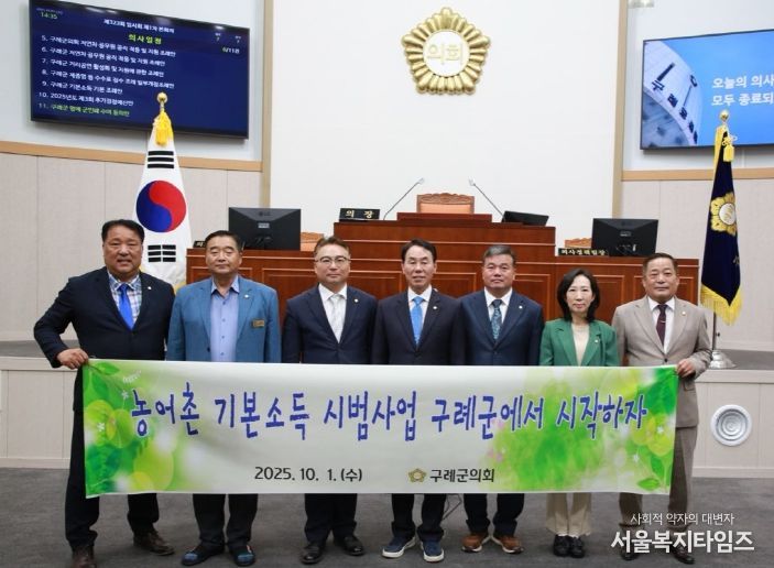 서울복지타임즈 이재연 기자 | 구례군의회는 지난 10월 1일 열린 제323회 임시회 본회의에서 '농어촌 기본소득 시범사업 선정 촉구 건의안'을 채택했다.
