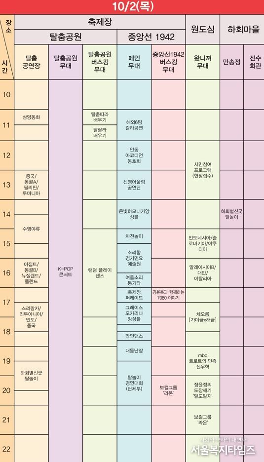 안동시는 “일곱째 날은 전통 탈춤, 해외공연, 그리고 K-POP 무대가 함께 어우러져 남녀노소 누구나 즐길 수 있는 다채로운 날”이라며, “특히 한류관광페스타는 국내외 관광객을 아우르는 대표 프로그램이 될 것”이라고 밝혔다.