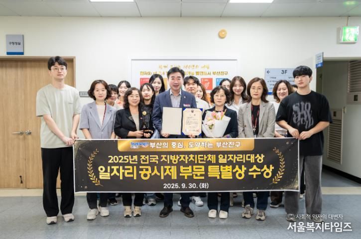서울복지타임즈 이재연 기자 | 부산 부산진구가 고용노동부 주관 ‘2025 전국 지방자치단체 일자리대상’ 지역일자리 목표 공시제 부문에서 특별상을 수상했다고 밝혔다.