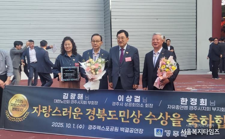서울복지타임즈 이재연 기자 | 경주시는 1일 열린 ‘2025 자랑스러운 경상북도민상’ 시상식에서 경주시민 3명이 수상자로 선정되는 영예를 안았다고 밝혔다.