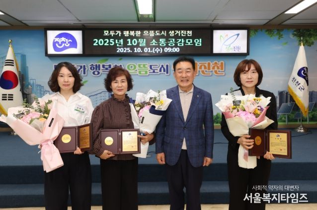 서울복지타임즈 이재연 기자 | 충북 진천군은 1일 여성친화도시 조성 사업에 적극적으로 참여하고 모범적인 활동을 보인 군민 3명에 대해 군수 표창을 수여했다.