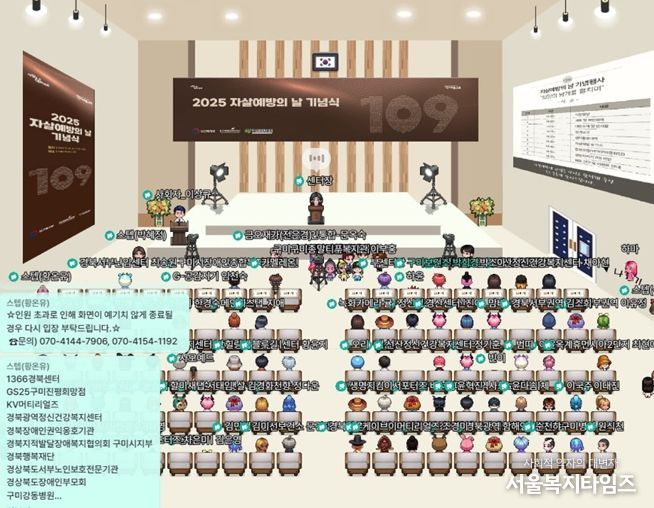서울복지타임즈 이재연 기자 | 구미시는 정신건강과 자살예방의 중요성을 알리기 위해 지난 1일 메타버스 플랫폼(ZEP) ‘구미정신건강월드’에서 '제13회 자살예방의 날 기념행사-희망의 날개를 펼치며'를 개최했다.