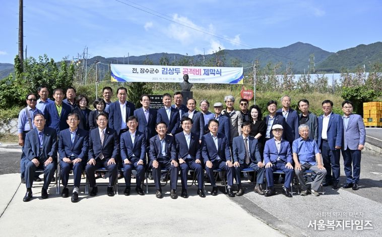 서울복지타임즈 이재연 기자 | 장수군은 지난 1일 장수사과원예협동조합 광장에서 김상두 전 장수군수의 공적비 제막식을 거행했다고 밝혔다.