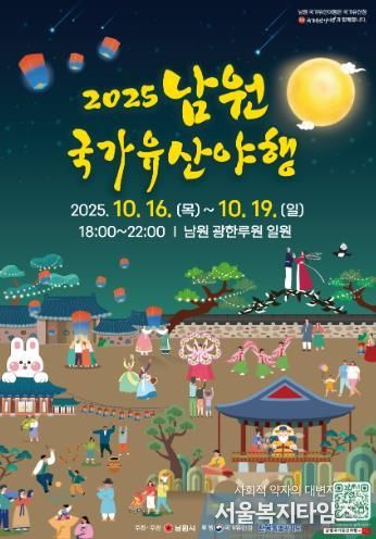 서울복지타임즈 이재연 기자 | 오는 16일부터 19일까지 남원시 전역을 축제로 물들일 2025 남원시 3대 대표 가을 축제가 2주 앞으로 다가온 가운데, 남원시가 가을 3대 축제를 앞두고 성공적인 개최를 위해 준비에 총력을 기울이고 있다.