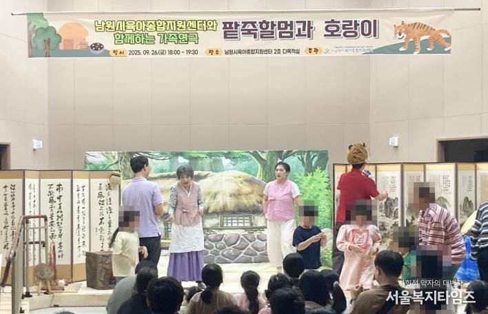 서울복지타임즈 이재연 기자 | 남원시육아종합지원센터에서는 지난 26일 영유아 가정을 대상으로 육아종합지원센터 2층 다목적실에서 ‘남원시육아종합지원센터와 함께하는 가족 연극, 팥죽할멈과 호랑이’를 개최하며 지역 영유아 가족들에게 뜻깊은 문화 체험의 기회를 제공했다.