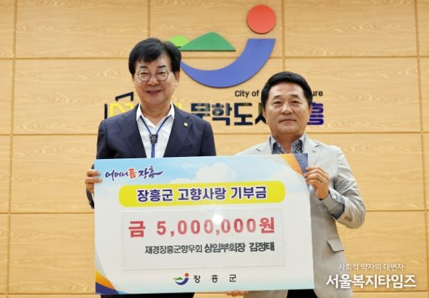 서울복지타임즈 이재연 기자 | 장흥군은 지난 1일 재경장흥군향우회 김정태 상임부회장이 장흥군청을 방문해 고향사랑기부금 500만 원을 전달했다고 밝혔다.
