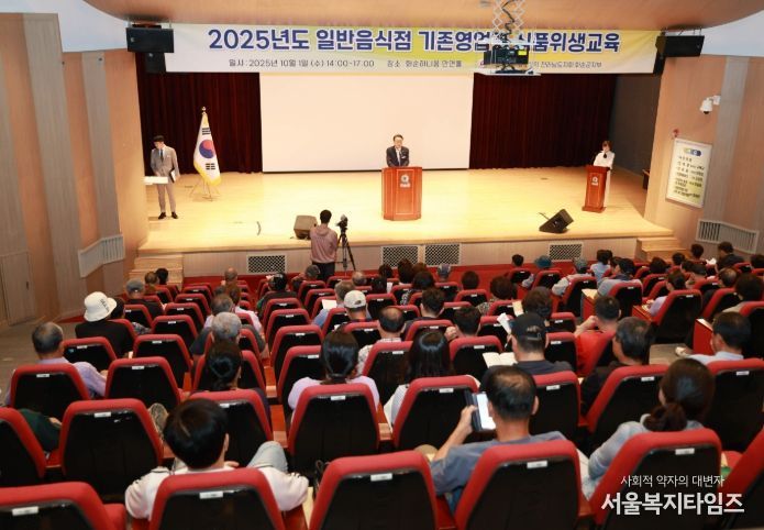 서울복지타임즈 이재연 기자 | 화순군과 (사)한국외식업중앙회 전라남도지회 화순군 지부(지부장 이향심)는 지난 10월 1일 하니움스포츠문화센터 만연홀에서 관내 일반음식점 영업주 200여 명을 대상으로 '2025년도 일반음식점 영업자 위생교육을 진행했다.