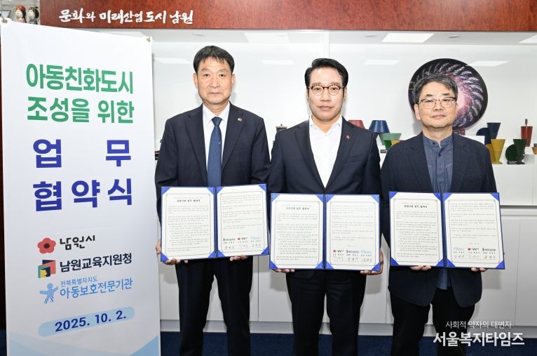 서울복지타임즈 이재연 기자 | 남원시는 지난 2일 남원교육지원청, 전북동부아동보호전문기관과 함께 아동친화도시 조성 및 아동 권리 증진을 위한 업무협약식을 체결했다.