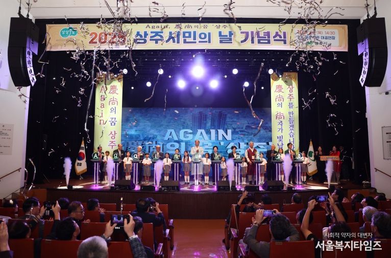서울복지타임즈 이재연 기자 | 상주시는 Again, 慶尙의 꿈 ‘상주’를 주제로 한 시민의 날 기념식을 10월 2일 상주문화회관 대공연장에서 개최했다. 상주시민의 날(매년 10월 12일)을 앞두고 개최된 이날 기념식에는 상주시 노인회장과 읍면동 분회장 등 지역 원로들과, 각급 기관·단체장, 출향인 등 500여 명의 시민이 함께해 Again, 慶尙의 꿈의 실현을 향한 염원을 한데 모았다.