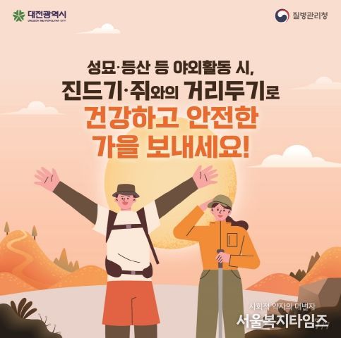 서울복지타임즈 이재연 기자 | 대전시는 성묘와 등산, 농작업 등 야외활동이 늘어나는 가을철을 맞아 시민들에게 진드기·설치류 매개 감염병 예방수칙 준수를 당부했다.
