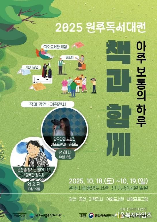 서울복지타임즈 이재연 기자 | 원주시는 10월 18일부터 19일까지 2일간 시립중앙도서관 일원에서 ‘2025 원주 독서대전’을 개최한다.