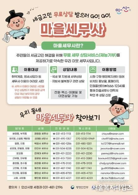 서울복지타임즈 이재연 기자 | 안산시는 올해 말까지 시민들에게 전문적인 세무 상담을 제공하기 위한 ‘제5기 마을세무사’ 제도를 운영한다고 10일 밝혔다.