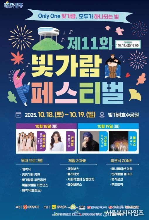 서울복지타임즈 이재연 기자 | 광주광역시는 전라남도, 나주시, 혁신도시 이전 공공기관과 함께 오는 18~19일 이틀간 나주 빛가람동 호수공원 일원에서 ‘2025년 제11회 빛가람페스티벌’을 개최한다.
