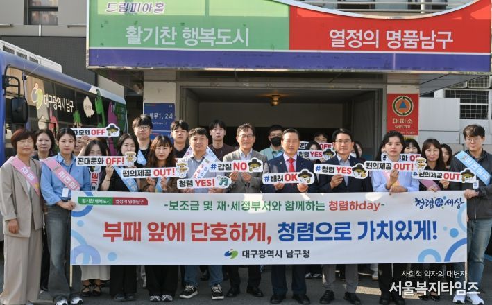 서울복지타임즈 이재연 기자 | 대구 남구는 지난 10월 1일 보조금 및 재·세정 부서 합동 청렴 캠페인을 실시했다고 밝혔다.