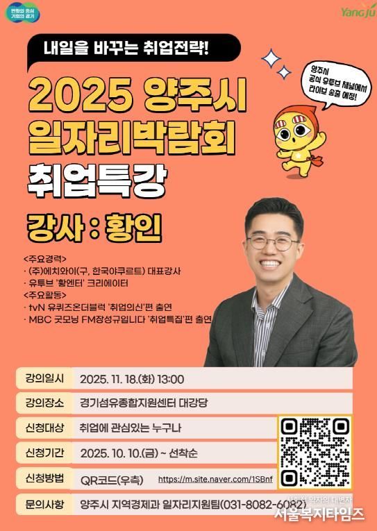 서울복지타임즈 이재연 기자 | 양주시가 오는 11월 18일 오후 1시, 경기섬유종합지원센터 대강당(지하 1층)에서 ‘2025 양주시 일자리박람회 취업특강’을 개최한다.