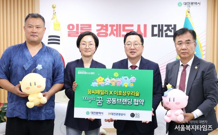 서울복지타임즈 이재연 기자 | 대전시는 10일 시청 응접실에서 대전관광공사, 우리술협동조합과 함께 공동브랜딩 업무협약을 맺고, 대전 대표 캐릭터 꿈돌이를 적용한 프리미엄 전통주 ‘100일의 꿈’을 출시한다고 밝혔다.
