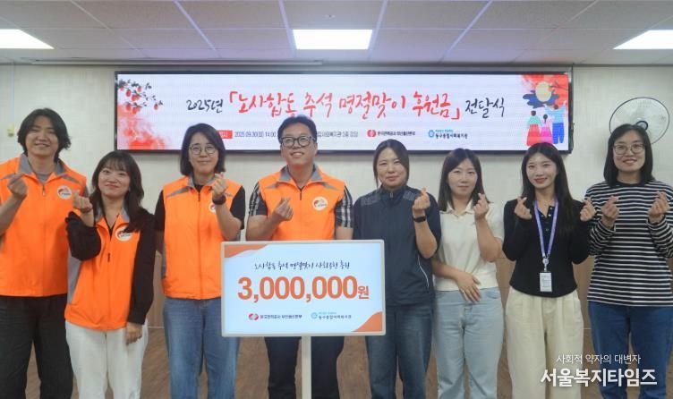 서울복지타임즈 이재연 기자 | 부산 동구종합사회복지관은 지난 9월 30일, 추석 명절을 앞두고 한국전력공사 부산울산본부로부터 노사 합동으로 마련한 300만 원의 후원금을 전달받았다고 밝혔다.