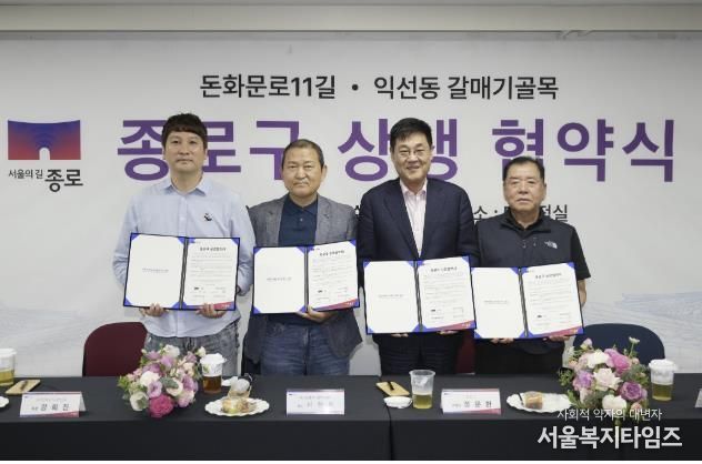이를 제도적으로 뒷받침하기 위해 10월 1일 ‘종로로데오거리상인회’, ‘익선동 갈매기골목 상인회’, ‘낙원지부상생위원회’와 상생거리 통합 운영 협약을 체결했다.