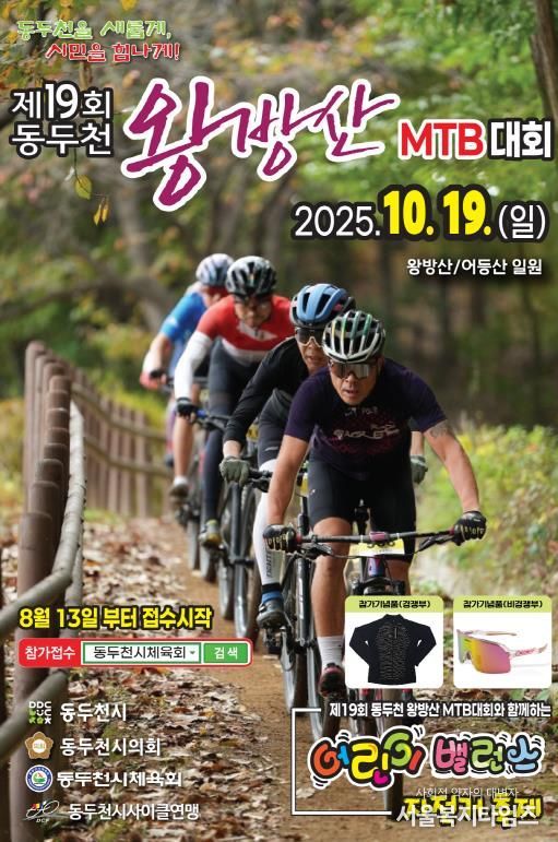 올해로 19회를 맞은 이번 대회는 전국의 MTB(산악자전거) 동호인과 가족, 관광객이 함께 즐기는 대표 스포츠 축제로, 동두천시 가을을 상징하는 명실상부한 지역 스포츠 이벤트로 자리 잡았다.