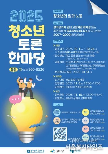 서울복지타임즈 이재연 기자 | 광주 광산구가 청소년들의 다양한 시각에서 생각하고 소통하는 ‘2025 광산 청소년 토론한마당’을 개최한다.