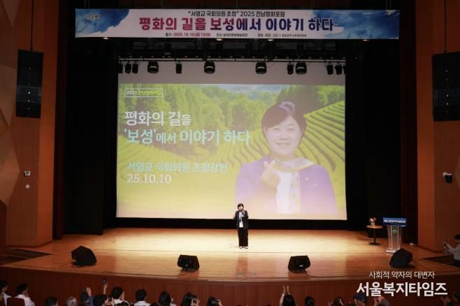 서울복지타임즈 이재연 기자 | 보성군은 지난 10일 보성군문화예술회관에서 개최된 ‘서영교 국회의원 초청 2025 전남평화포럼’이 군민 700여 명이 참석한 가운데 성황리에 마무리됐다고 밝혔다.