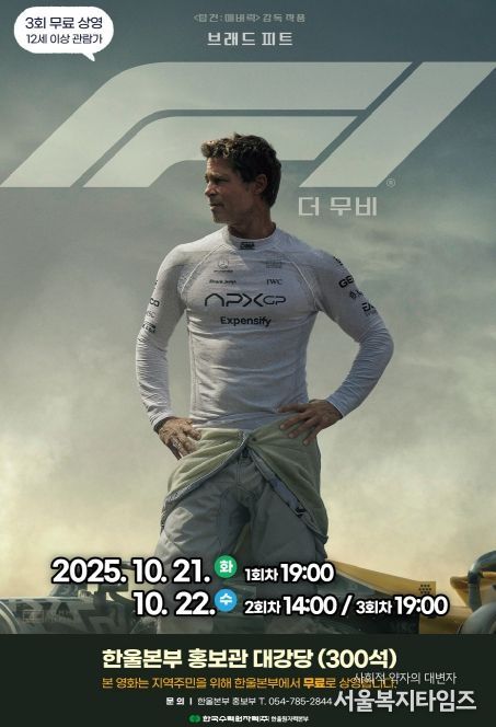 서울복지타임즈 이재연 기자 | 한국수력원자력(주) 한울원자력본부는 지역주민을 대상으로 10월 21일, 22일 양일간 한울에너지팜 대강당에서 영화'F1 더 무비'를 무료 상영한다.